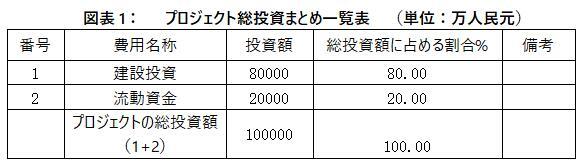 プロジェクトの落成後、年間売上高は72464万人民元、利益21739万人民元、投資回収期間6.6年(税引後、建設期間2年を含む)、投資利益率21.74%。