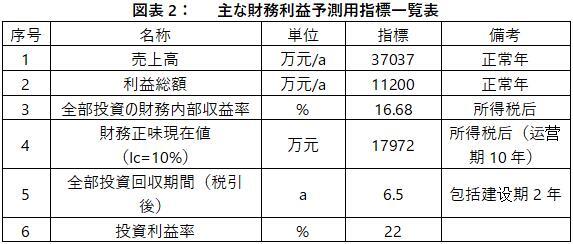 プロジェクトの落成後、年間売上高は37037元、利益11200万元、投資回収期間6.5年(税引後、建設期間2年を含む)、投資利益率22%。