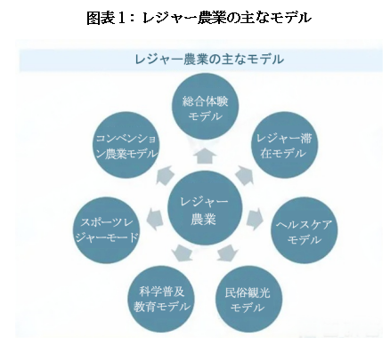 レジャー農業は農業生産、農村風貌、農家生活、農村文化を基礎として、農業と農村の多様な機能を開発し、レジャー観光、農作業参加と農家体験などのサービスを提供する新型農業産業形態である。現在、中国のレジャー農業発展のモデルは多種多様で、主に総合体験モデル、レジャー滞在モデル、ヘルスケアモデル、民俗観光モデル、科学普及教育モデル、スポーツレジャーモデル、コンベンション農業モデルなどを含む。