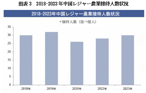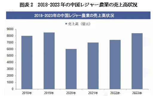 現在、レジャー農業のブームは休日の間に集中しており、観光客層は市街地に近いレジャー農業区を選んで観光、果物採集、農作業体験、農民の生活の理解、郷土情緒を楽しみ、宿泊や休暇を楽しむ傾向にある。同時に、ますます多くの農業主体がレジャー農業を発展させ始め、市場には質の高いレジャー農園が現れ、コースの分業はますます細分化されている。2023年末現在、全国14.7%の村の約50万の農家がレジャー農業と農村観光の接待を行っており、年間延べ30億人以上の観光客を接待している。