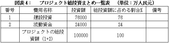 本プロジェクト総投資額は100000万元、その内、建設投資額76000万元、流動資金24000万元。