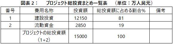 本プロジェクト総投資額は15000万元、その内、建設投資額12150万元、流動資金2850万元。