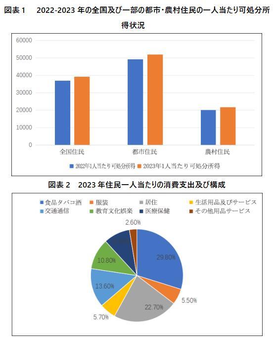 国内市場から見ると、2023年の年間国内総生産は1260582億元で、不変価格で計算すると、前年より4.6%増加した。産業別に見ると、第3次産業の増加値は688238億元で、7.1%増加した。2023年には全国及び都市部と農村部住民の一人当たり可処分所得が着実に上昇し、農村部住民の収入増加が明らかになり、実際の伸び率は7.6%に達した。消費支出の構成では、食品・タバコ・お酒、教育文化娯楽などでの伸びが顕著で、消費需要は多様化している。