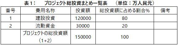 本プロジェクト総投資額は150000万元、その内、建設投資額120000万元。