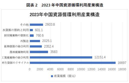 2023年、中国における再生資源リサイクル産業規模は16697.0億元で、40.9%を占め、中国で資源リサイクル産業規模の比重が最も大きい。産業廃棄物の総合利用規模はそれに続き、産業規模は12151.4億元に達し、29.8%を占めている。