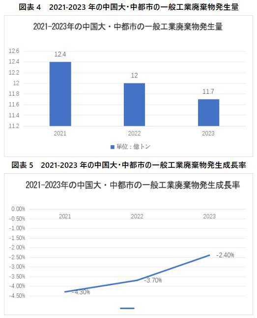 ここ数年来、一方で中国はエネルギー構造と産業構造の調整を加速させ、伝統的な石炭、鋼鉄、建材、非鉄、石化などの原材料業界の生産規模は年々ダウンしている。もう一方、環境保護への日増しな重視に伴い、企業自身の生産技術は持続的に最適化され、生産効率は向上され、自身の固体廃棄物の発生量も同様にある程度低下している。2023年、中国の一般工業用固体廃棄物の発生量は11.7億トンに減少し、前年同時期比2.4%ダウンした。