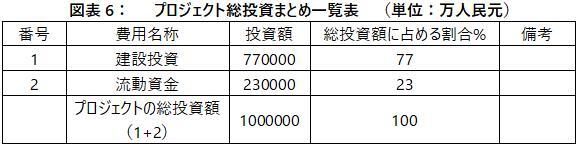 本プロジェクト総投資額は1000000万元、その内、建設投資額770000万元、流動資金230000万元。