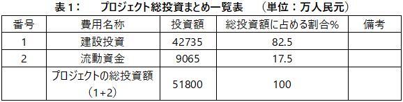 本プロジェクト総投資額は51800万元、その内、建設投資額42735万元。