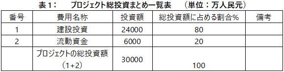 本プロジェクト総投資額は30000万元、その内、建設投資額24000万元。