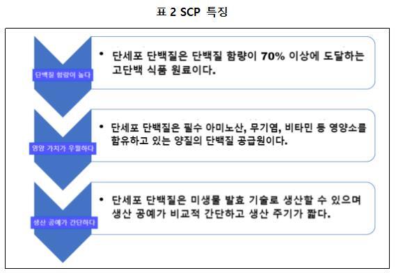 단세포단백질(single cell protein,SCP)은 미생물단백질, 균제단백질이라고도 하며, 각종 공업과 농업생산 폐기물 및 기타 양분을 이용하여 세균, 효모, 미세조류 등 단 세포생물 및 곰팜이 등 구조가 단순한 다세포생물 대규모로 배양하여 얻은 단백질 자원이다. 이는 직접 사람과 동물의 단백질 공급원으로 될 수 있으며 인류가 식용하는 가축사료에 첨가 할 수 있다.