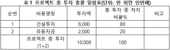 프로젝트 총 투자가 10,000만 위안, 그중 건설투자가 8,000만 위안 이다.