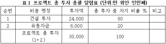 프로젝트 총 투자는 30,000만 위안, 그중 건설 투자가 24,000만 위안이다.