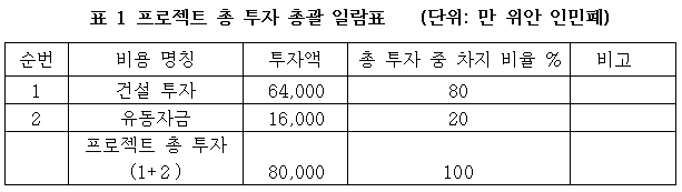 프로젝트 총 투자는 80,000 만 위안이며, 그 중 건설 투자는 64,000 만 위안이다.