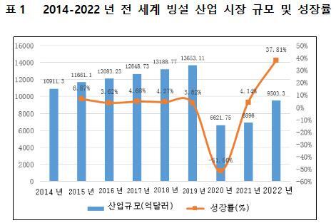 2014년부터 2019년까지 전 세계 빙설 산업 시장 규모는 매년 증가하였다. 2019년 전 세계 빙설 산업 시장 규모는 13653.11억 달러였으나 코로나19 팬데믹의 영향으로 2020년 빙설 산업 규모가 6621.75억 달러로 감소하였다. 팬데믹이 2022년 이후 호전되면서 전 세계 빙설 산업 규모가 반등하였다.