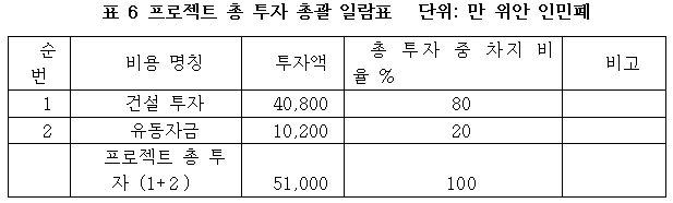 프로젝트 총 투자는 51,000만 위안이며, 그 중 건설 투자는 40,800 만 위안, 유동 자금은 10,200 만 위안이다.