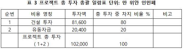 1.3 프로젝트 총 투자 및 자금 조달