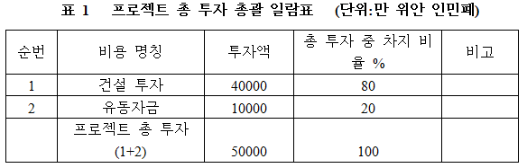 프로젝트의 총 투자는 50,000만 위안이며, 그 중 건설 투자가 40,000만 위안이다.