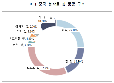 짚은 농작물 수확 후 중요한 바이오매스 자원으로서 중국 농업의 급속한 발전으로 생산량이 급격히 증가하는 추세를 보이고 있다. 중국의 이론적인 연간 농작물 짚 자원과 수집 가능한 자원은 세계 1위이며 세계 짚 생산량의 큰 부분을 차지한다. 그 중 벼, 밀, 옥수수 등 주요 농작물이 생산하는 짚의 총량이 큰 비중을 차지하며, 이 세 가지의 합은 약 80%에 달한다. 이 자원의 효과적인 이용은 중국 농업의 지속 가능한 발전과 생태 환경 보호에 매우 중요하다.