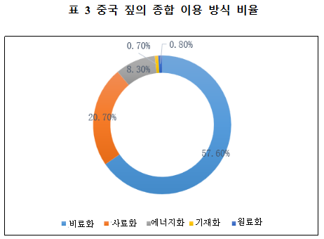 국무원 판공청의 《농작물 짚의 종합 이용 가속화 추진에 관한 의견》은 짚의 종합 이용 기술을 비료화, 사료화, 연료화, 원료화, 기본 재료하의 5가지 주요 경로로 요약하여 홍보 및 데이터 통계를 용이하게 할 것을 제출했다.