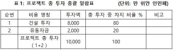 프로젝트의 총 투자는 10,000만 위안이며, 그 중 건설 투자가 8,000만 위안 위안이다.