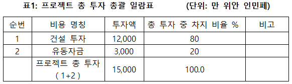 1.3 프로젝트 총투자 및 자금조달