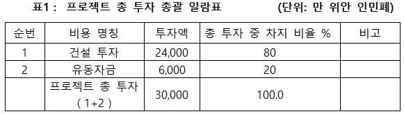1.3 프로젝트 총투자 및 자금조달