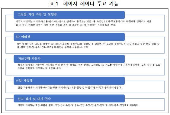 레이저 레이더는 레이저 빔을 발사하여 목표물의 위치, 속도 등 특성을 탐지하는 레이더 시스템이다. 레이저 레이더는 기술 경로에 따라 기계식, 혼합 고체식, 고체식 세 가지 범주로 나눌 수 있다.