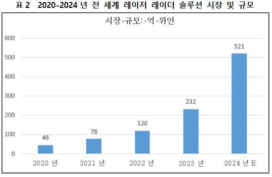 최근 몇 년간 자율주행, 로봇 및 드론 등 산업의 빠른 발전과 함께 레이저 레이더는 점차 연구 단계에서 상용화 과정으로 나아가고 있다. 2022년 전 세계 레이저 레이더 솔루션 시장 규모는 120억 위안이었으며, 2023년에는 232억 위안으로 증가했다. 2030년까지 12,537억 위안으로 증가할 것으로 예상된다.