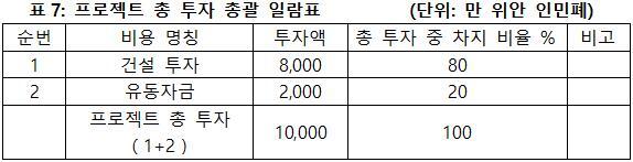 프로젝트의 총 투자는 10,000만 위안이며, 그 중 건설 투자가 8,000만 위안, 유동자금이 2,000만 위안이다.