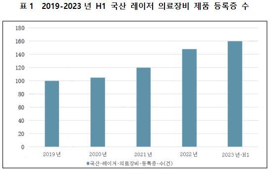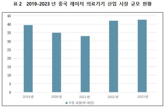 레이저 의료는 레이저 장비 기술의 발전에 따라 새로운 응용 영역이 지속적으로 확장되고, 기존 응용 분야의 레이저 장비도 계속 업그레이드되고 있다. 2023년 의료미용 분야는 여전히 레이저 의료기기의 주요 응용 영역으로, 수요량이 79.52만 대로 98% 이상을 차지했으며, 레이저 의료기기 시장 생산량은 약 55.96만 대였다. 2019-2022년 레이저 의료기기가 전체 레이저 산업에서 차지하는 비중은 6%에서 4.8%로 감소했으며, 시장 규모는 변동 추세를 보였다. 2023년 중국 레이저 의료기기 산업 시장 규모는 약 42.6억 위안이다.