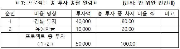 프로젝트의 총 투자는 50,000만 위안이며, 그 중 건설 투자가 40,000만 위안, 유동자금이 10,000만 위안이다.