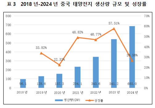 최근 몇 년간, 중국의 신에너지 발전을 격려하는 우대 정책의 혜택으로, 태양전지판 생산량은 양호한 성장세를 보이고 있다. 국가통계국 데이터에 따르면, 2023년 중국의 태양전지(태양광 발전 전지) 생산량은 541.2GW로, 전년 동기 대비 57.51% 성장했다. 2024년 생산량은 685GW 성장했다.