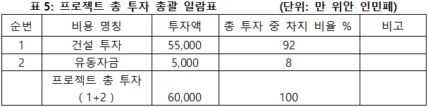 프로젝트의 총 투자는 60,000만 위안이며, 그 중 건설 투자가 55,000만 위안, 유동자금이 5,000만 위안이다.