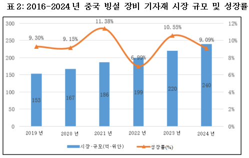 2023년, 중국의 빙설 장비 산업 규모는 빠르게 확대되어 2015년의 50억 위안 미만에서 2023년에는 약 220억 위안으로 성장했다. 또한, 2023년 중국의 빙설 산업 전체 규모도 계속 확대되고 있다. 2024년 중국 빙설 장비 시장 규모는 240억 위안에 도달할 것으로 예상된다.