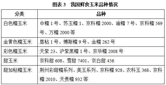我国鲜食玉米正向多元化及特色化方向发展,分为白色糯玉米、金黄色糯玉米、彩色糯玉米、甜玉米、甜加粘糯玉米。