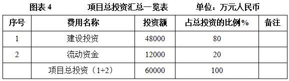项目总投资为60000万元,其中:建设投资48000万元,流动资金12000万元。