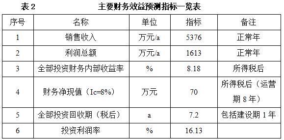项目达产后,年销售收入5376万元,利润1613万元,投资回收期7.2年(税后,含建设期1年),投资利润率16.13%。