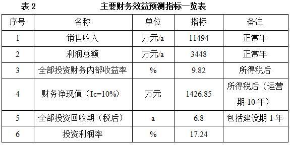 项目达产后,年销售收入11494万元,利润3448万元,投资回收期6.8年(税后,含建设期1年),投资利润率17.24%。