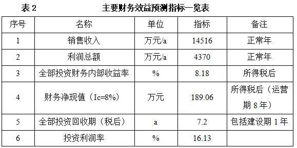项目达产后,年销售收入14516万元,利润4370万元,投资回收期7.2年(税后,含建设期1年),投资利润率16.13%。