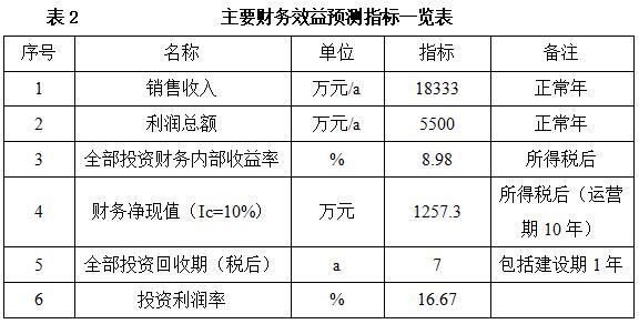 项目达产后,年销售收入18333万元,利润5500万元,投资回收期7年(税后,含建设期1年),投资利润率16.67%。