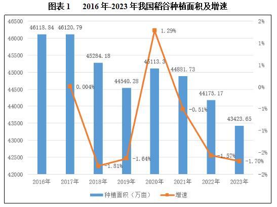 我国是稻作历史最悠久、水稻遗传资源最丰富的国家之一,水稻种植面积和产量均居世界前列,也是世界主要的稻谷种植国之一。稻谷产业是关系到国计民生的重要产业,在构建和完善粮食安全保障体系中具有重要地位。实现稻谷产业高质量发展,对推进粮食供给侧结构性改革,实现更高层次、更高质量、更可持续保障国家粮食安全具有重要意义。由于近年来玉米等谷物价格大幅上涨,农民种植意愿大幅增加等因素,我国稻谷种植面积略微有所下降。
