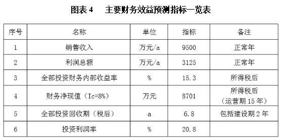 项目达产后,年销售收入9500万元,利润3125万元,投资回收期6.8年(税后,含建设期2年),投资利润率20.8%。