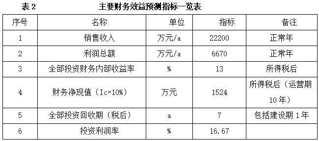 项目达产后,年销售收入22200万元,利润6670万元,投资回收期7年(税后,含建设期1年),投资利润率16.67%。