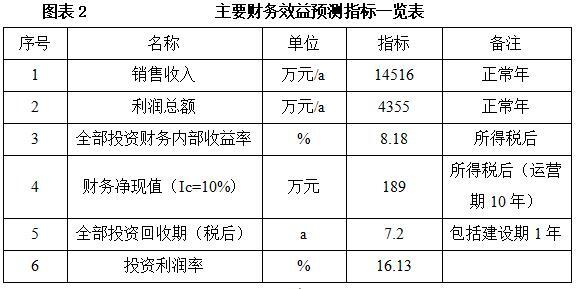 项目达产后,年销售收入14516万元,利润4355万元,投资回收期7.2年(税后,含建设期1年),投资利润率16.13%。