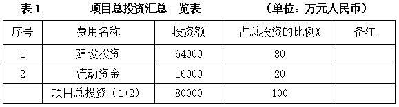 项目总投资80000万元,其中建设投资64000万元。