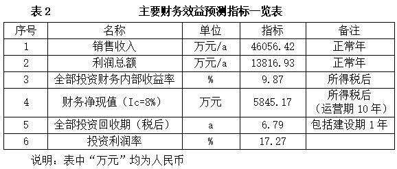 项目达产后,年销售收入46056.42万元,利润13816.93万元,投资回收期6.79年(税后,含建设期1年),投资利润率17.27%。