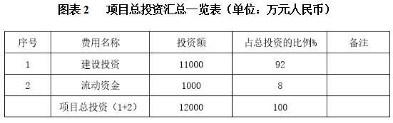 项目总投资为12000万元,其中建设投资11000万元,流动资金1000万元。