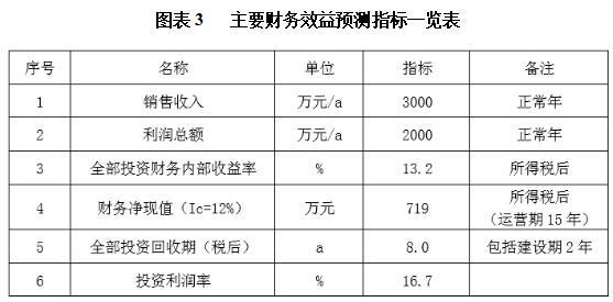 项目达产后,年销售收入3000万元,利润2000万元,投资回收期8.0年(税后,含建设期2年),投资利润率16.7%。