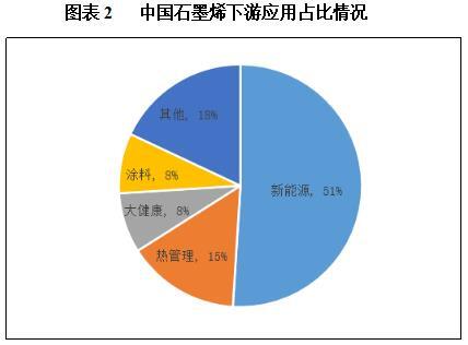 从下游应用占比来看,我国石墨烯应用占比最高的为新能源领域,占比为51%;其次为热管理,应用占比为15%;第三为大健康和涂料领域,应用占比均为8%。