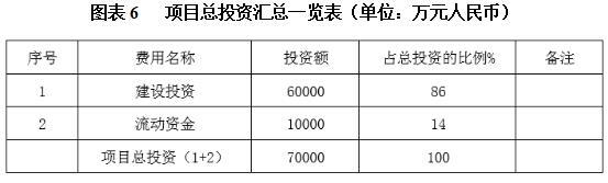 项目总投资为70000万元,其中建设投资60000万元,流动资金10000万元。